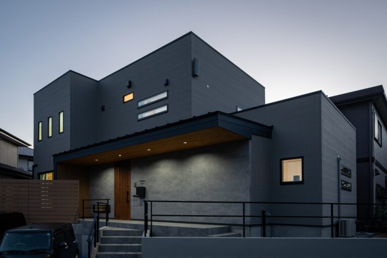 POINT01 直線が美しく重なるスタイリッシュな外観は、グレーの外壁と木目天井が調和した上質な佇まい。 平屋のように見える落ち着いたフォルムに、[…]
